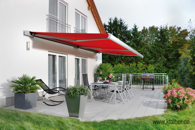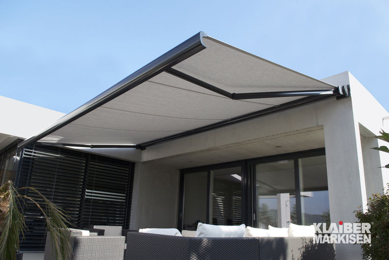 Die Markisenneigung ist von 5° bis 35° einstellbar. Der Antrieb erfolgt wie bei allen KLAIBER Kassettenmarkisen serienmäßig komfortabel über Funkmotor mit Handsender; alternativ wird auch die Variante mit Getriebe und Handkurbel angeboten.